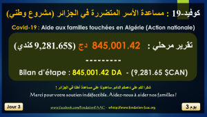 La Fondation Algérienne pour l’Action Citoyenne – FAAC lance un projet de solidarité qui Le projet qui vise à soutenir financièrement les familles algériennes touchées par la pandémie du Covid-19. Une allocation de 10,000 DA sera accordée à ces familles à travers tout le territoire algérien en commençant par les familles des régions/wilayas les plus touchées par Covid-19.